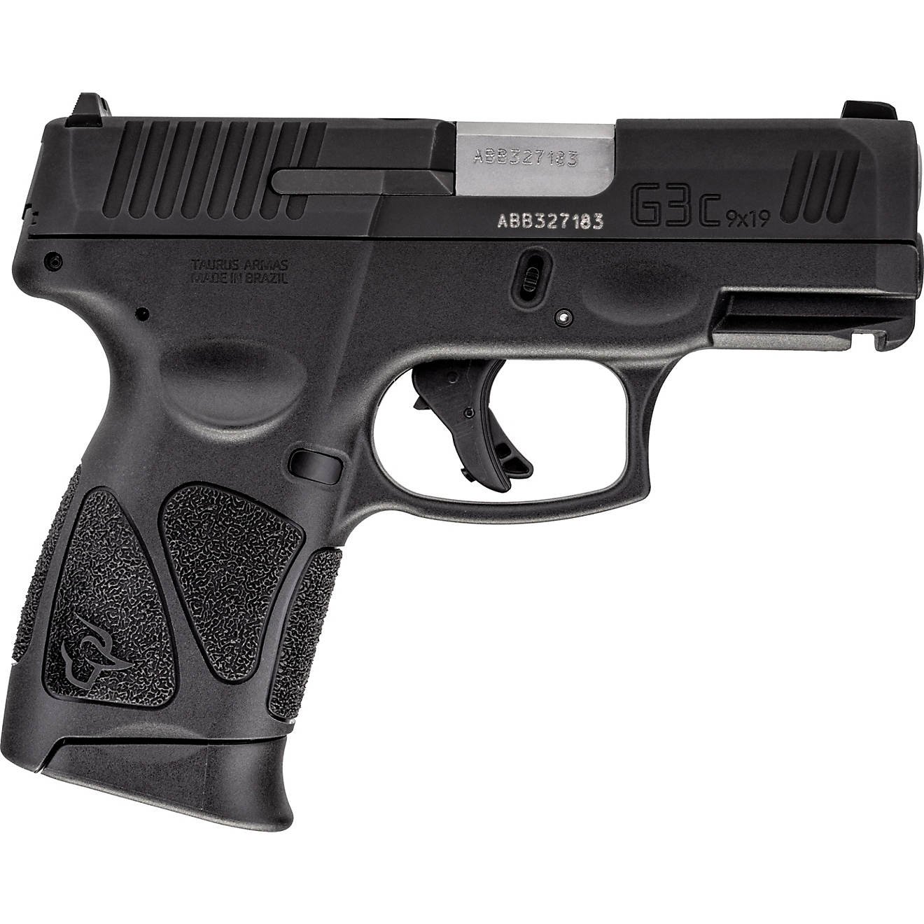 Taurus G3C 9mm Perfectly compact, exceptionally affordable, and built on the proven G3 platform, the Taurus® G3c Compact Semi-Auto Pistol is what you want in a self-defense handgun. The compact, quick-handling frame is made of lightweight polymer, the slide is a steel alloy, and the barrel is made of stainless steel with a matte stainless finish. Front slide serrations make handling and control easy. Taurus G3c Compact Semi-Auto Pistol crafted by Taurus features a Picatinny rail (Mil-STD 1913) to accommodate aftermarket extras. Its Gen 3 trigger system and trigger safety add extra functionality to the mix. Fixed front sight with the drift-adjustable rear sight. Loaded chamber indicator, manual safety, and striker block enhance shooting safety. Three magazines included.